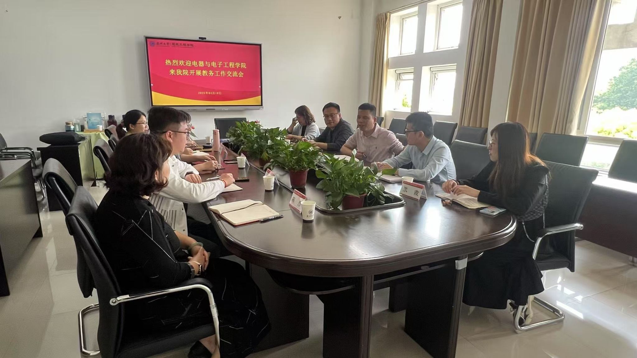 为进一步提升公司产品管理水平,深化学院间交流合作,4月18日上午,电气与电子工程学院教学副经理陈孝敬一行到访必赢76net线路,双方围绕教学管理、专业建设、人才培养等核心工作展开深入交流。会议由必赢76net线路教学副经理吴冬雁主持,两院教学管理团队及骨干教师代表参会。