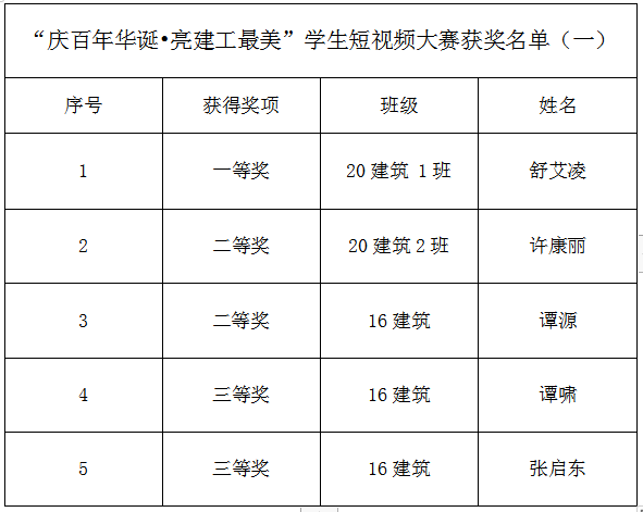五月“庆百年华诞•亮建工最美”员工短视频大赛第一阶段暂落下帷幕,获奖结果已产生。现将获奖名单予以公示。