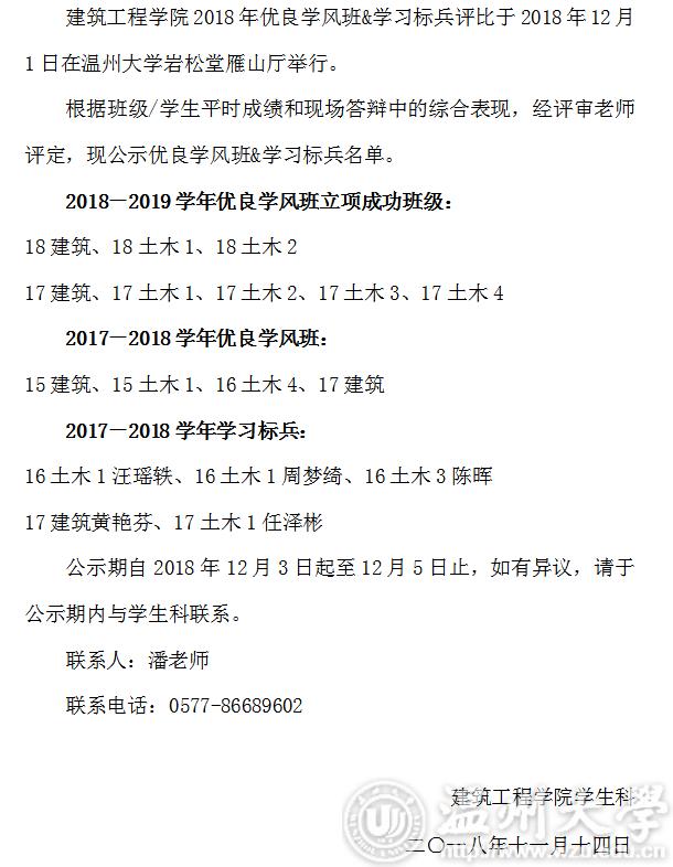建工学院2018年优良学风班&学习标兵公示