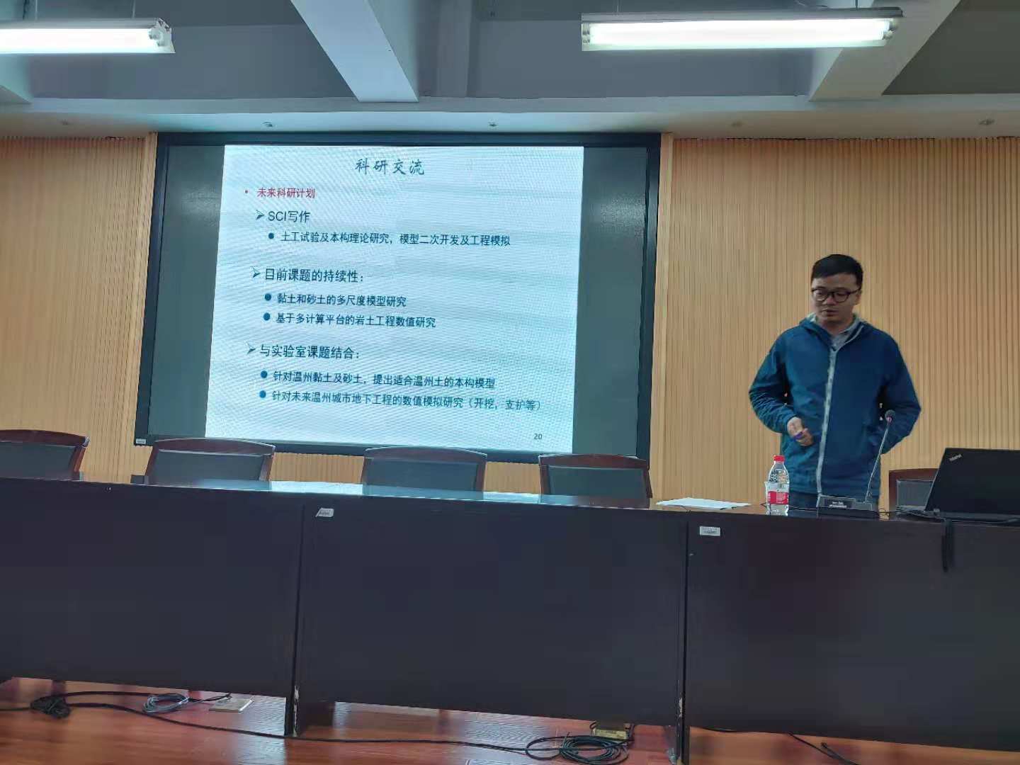 首先,吴则祥老师简单介绍了个人的读博经历,并提及其在法国上学的轶事,接着就近海岸工程土的力学特性及应用研究为主线的科研进展状况,给同学们做了详尽的介绍。最后是师生互动环节,对于大家科研和学习中遇到的问题,吴老师与同学们进行了热烈的讨论。